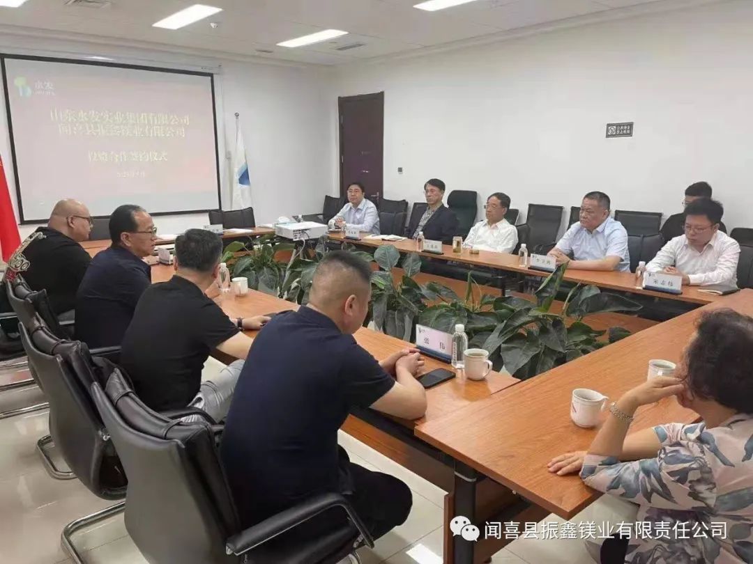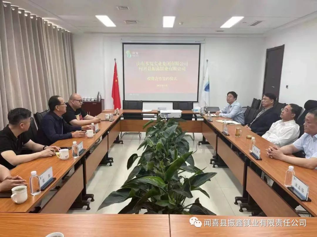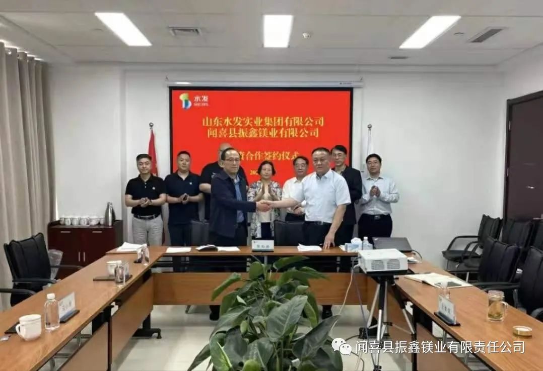 為進(jìn)一步擴(kuò)大公司資產(chǎn)規(guī)模,5月20日,聞喜縣振鑫鎂業(yè)有限責(zé)任公司與山東水發(fā)實(shí)業(yè)集團(tuán)有限公司就鎂合金生產(chǎn)及銷(xiāo)售項(xiàng)目正式簽署投資合作協(xié)議。公司創(chuàng)始人馬小泉、董事長(zhǎng)馬領(lǐng)、總經(jīng)理劉小龍與實(shí)業(yè)集團(tuán)董事長(zhǎng)王德榮、總經(jīng)理李衛(wèi)鴻、副總經(jīng)理張曉鵬等人出席簽約儀式。